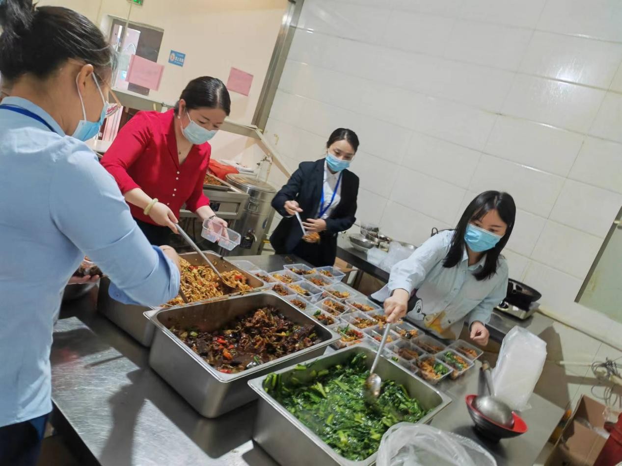 面對(duì)疫情變化,公司食堂工作人員出行受限,眼看國(guó)資系統(tǒng)抗疫人員,市城建投公司、市交建投公司包保社區(qū)志愿者、醫(yī)務(wù)人員和駐守大本營(yíng)的守護(hù)者用餐無(wú)法保證時(shí),市城建投公司領(lǐng)導(dǎo)率先垂范,帶領(lǐng)“大本營(yíng)”守護(hù)者們走進(jìn)食堂,紛紛化身洗菜工、切菜員、廚師、打菜員……自己動(dòng)手,煮飯炒菜,打包送餐?!皠傞_始挺怕,壓力也大,頭一回用大型的廚房設(shè)備,挑戰(zhàn)兩三百人的用餐,心里在打鼓,怕操作不當(dāng),耽誤大家就餐,怕味道不好等,還是大家的鼓勵(lì)和齊心協(xié)力,讓我們圓滿完成任務(wù)?!焙笄诒U辖M工作人員笑道,“掌勺不易,還好最后大家都挺滿意”。