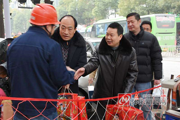 1月29日下午,懷化市文明辦、懷化市直機關工委領導帶著懷化市志愿者協(xié)會負責人一行來到國網(wǎng)懷化供電公司,慰問在抗冰保電戰(zhàn)斗中沖鋒在前的共產(chǎn)黨員服務隊。得知國網(wǎng)懷化供電公司配電運檢室共產(chǎn)黨員服務隊此時正在懷西路搶修線路,一行人馬上趕到了懷西路施工現(xiàn)場。
