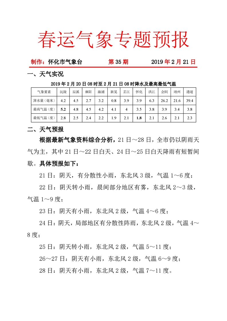 春運(yùn)氣象專題預(yù)報(bào)(第35期)