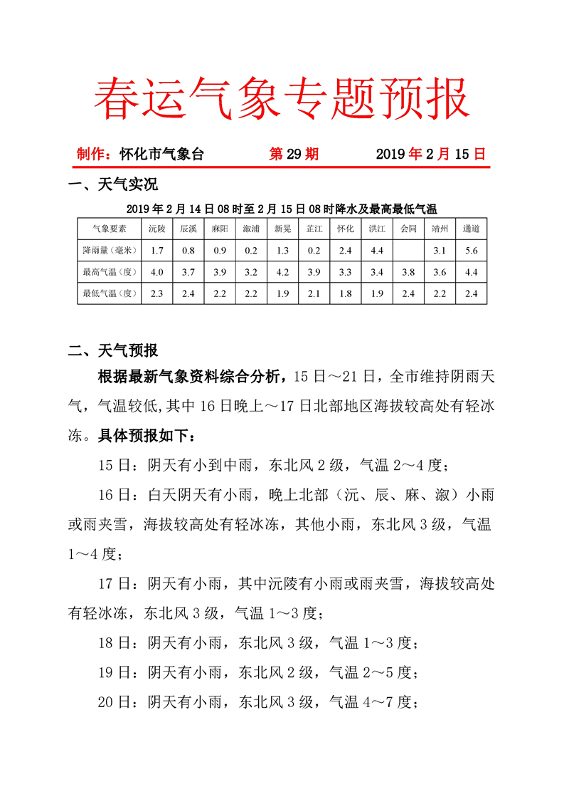 春運(yùn)氣象專題預(yù)報(bào)(第29期)