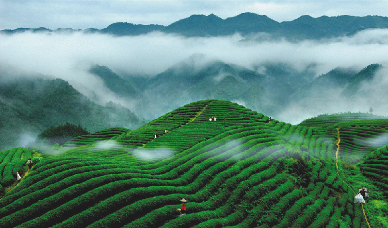碣灘茶栽培歷史悠久。據(jù)《辰州府志》載:邑中出茶多,先以碣灘產(chǎn)者為最……相傳1300多年前的盛唐時(shí)期,唐睿宗的娘娘胡鳳姣從故里沅陵胡家坪回京,夜泊碣灘,品嘗到碣灘茶,覺香氣馥郁,甘醇爽口,便擇其佳制,帶回京都,唐睿宗賞賜眾大臣品嘗,無不交口稱贊。此后,碣灘被指令辟為茶園,官府每年派人督造監(jiān)制。以后又逐漸傳到了日本和印度。