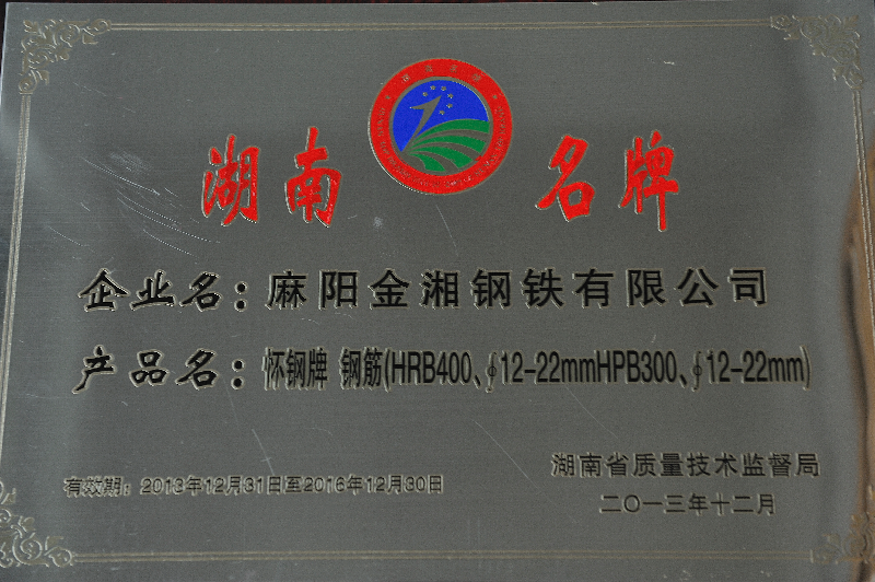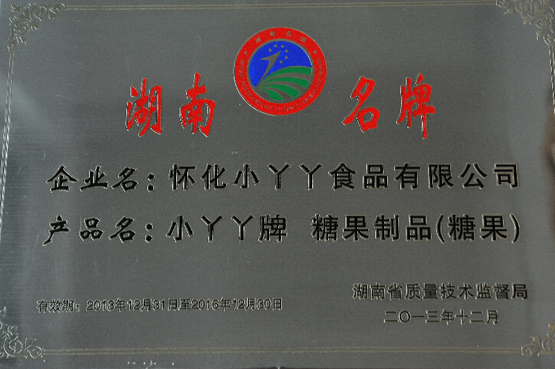 2013年懷化市獲得湖南名牌產(chǎn)品目錄