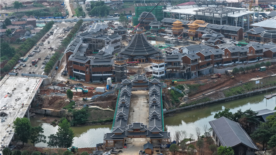 8月16日,懷化榆樹(shù)灣文旅商綜合體正在施工中。(懷化日?qǐng)?bào)全媒體記者 潘雨 攝)