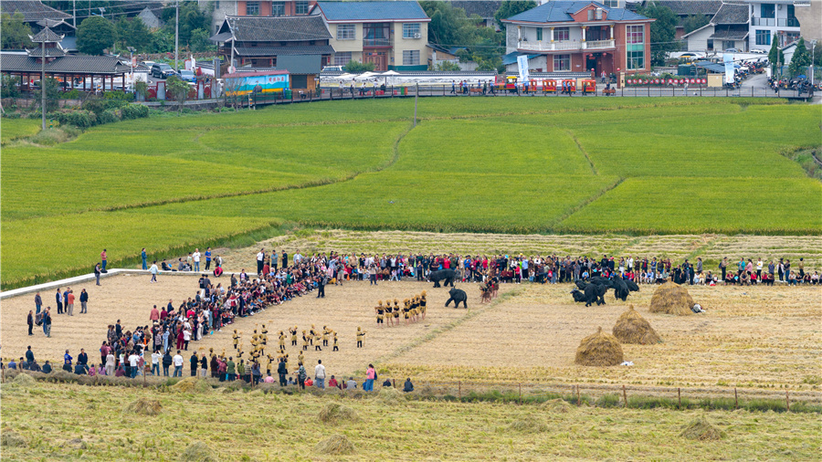 9月23日,中國(guó)農(nóng)民豐收節(jié),會(huì)同縣的稻香詩(shī)田景區(qū)內(nèi)一派歡騰景象,成為慶祝豐收的熱鬧主場(chǎng)。田埂間稻浪翻滾,空氣中彌漫著清甜的稻香,一場(chǎng)場(chǎng)充滿鄉(xiāng)土氣息與歡樂(lè)氛圍的活動(dòng)在此輪番上演——激昂的斗牛舞踏著鼓點(diǎn)躍動(dòng),金黃的草龍舞在人群中蜿蜒穿梭,拔河比賽的吶喊聲此起彼伏,還有趣味十足的抓鴨子游戲,讓參與者在追逐與歡笑中共享豐收的喜悅,將秋日的田園變成了一片歡樂(lè)的海洋。