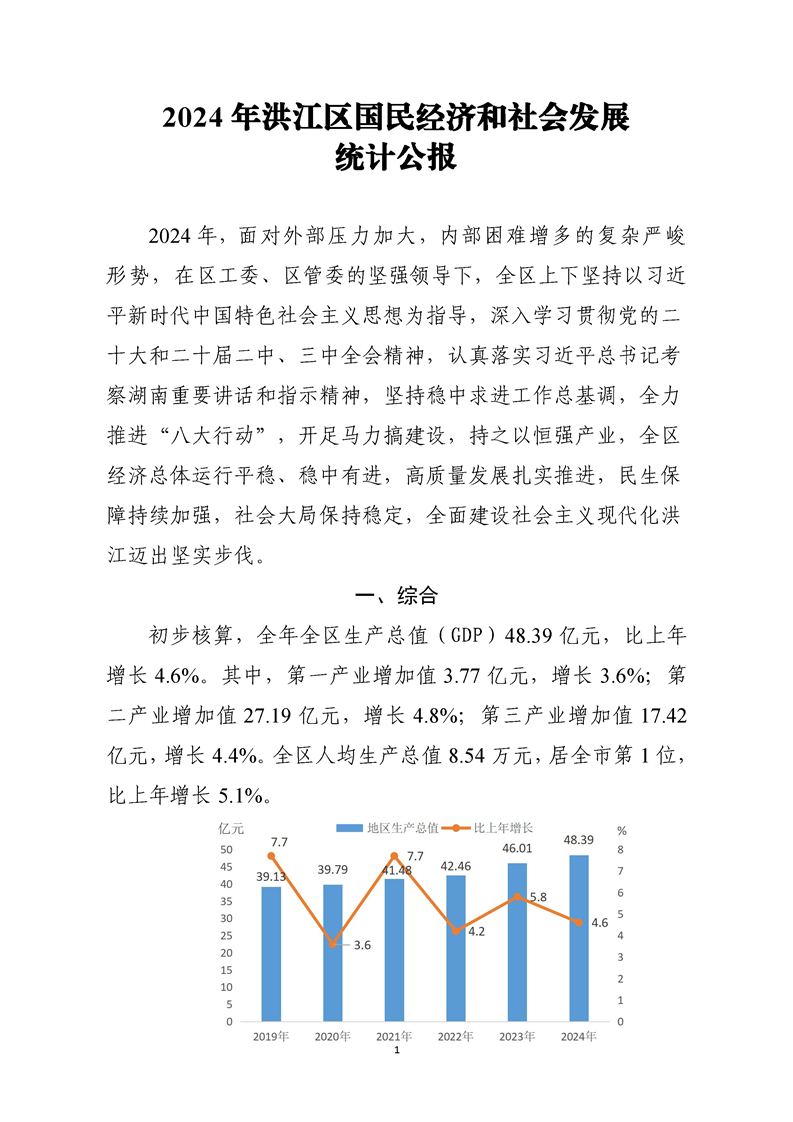 2024年洪江區(qū)國(guó)民經(jīng)濟(jì)公報(bào)
