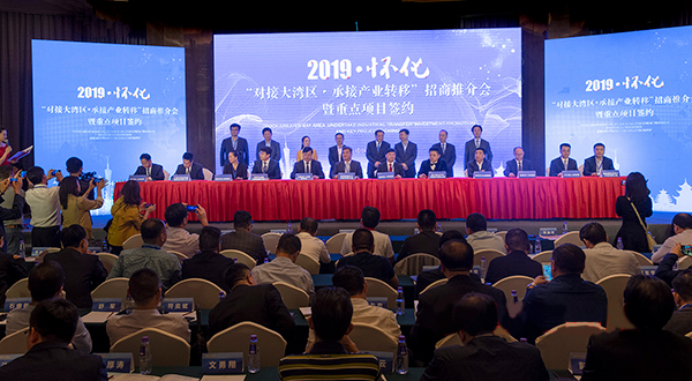 2019年4月14日下午,2019年湖南——粵港澳大灣區(qū)投資貿(mào)易洽談周懷化市“對接大灣區(qū)·承接產(chǎn)業(yè)轉(zhuǎn)移”招商推介會暨重點項目簽約儀式在深圳舉行,現(xiàn)場簽約24個項目,合同金額達139.6億元。