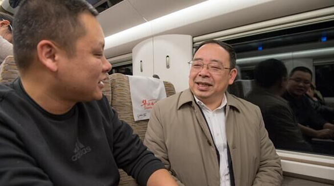 1月11日,省人大代表鐘果林在高鐵上接受懷化日報記者的采訪。(記者 潘雨 攝)