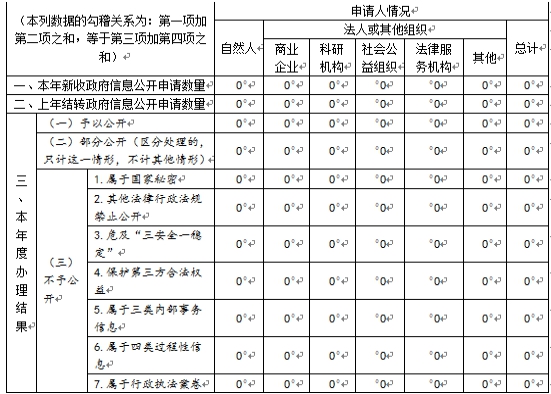 本報告是根據(jù)《中華人民共和國政府信息公開條例》,結(jié)合我局工作實際編制而成,其年度報告統(tǒng)計時間為2020年1月1日至2020年12月31日,包含總體情況、主動公開政府信息情況、收到和處理政府信息公開申請情況、政府信息公開行政復(fù)議、行政訴訟情況和存在的主要問題及改進(jìn)情況。