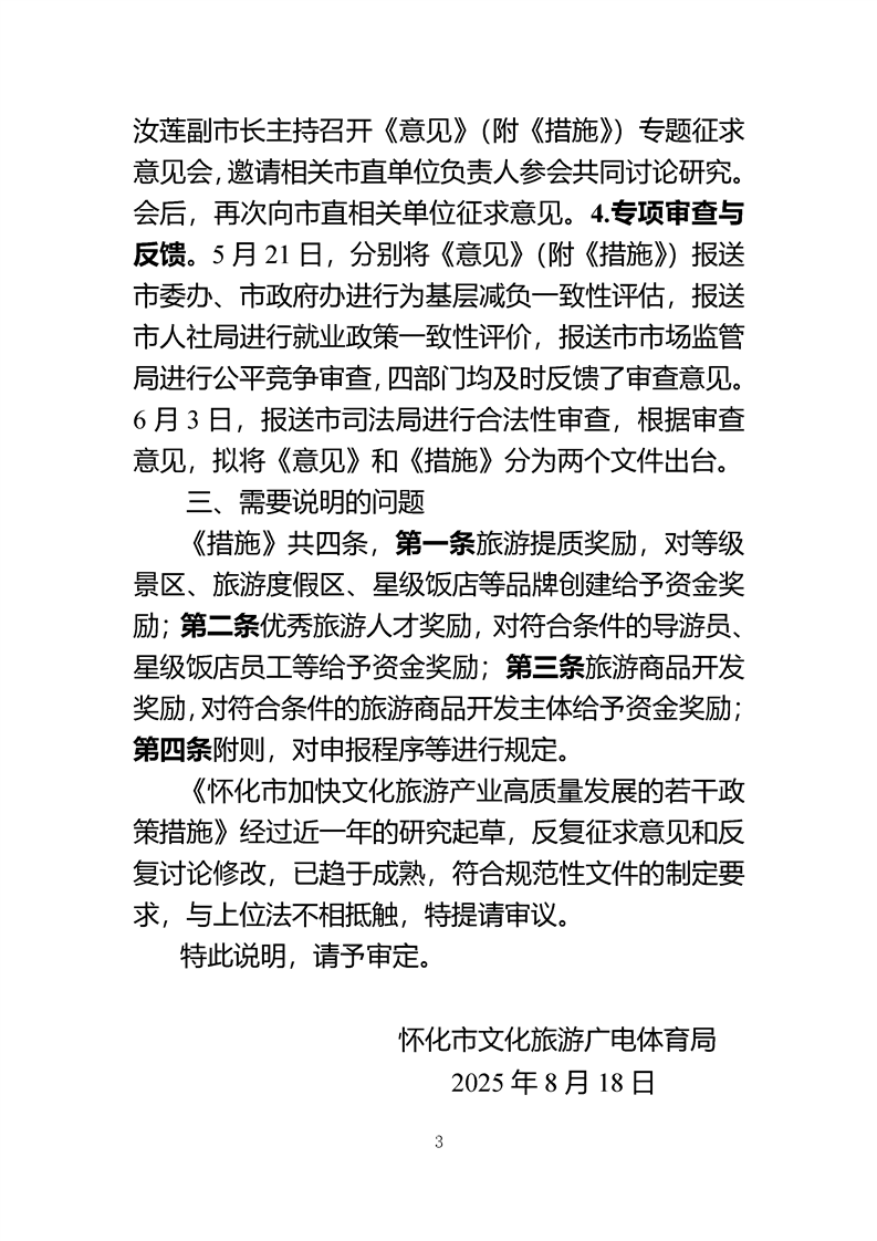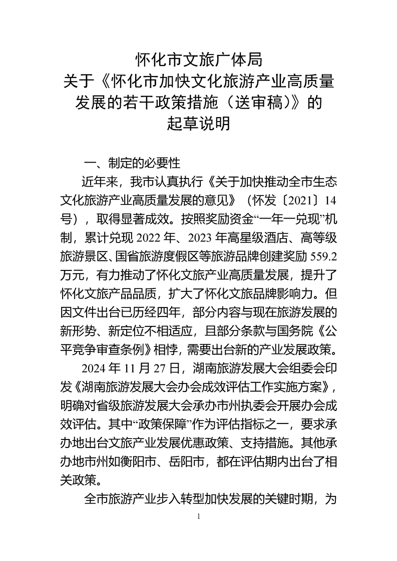 • 關于《懷化市加快文化旅游產業(yè)高質量發(fā)展的若干政策措施(送審稿)》的起草說明