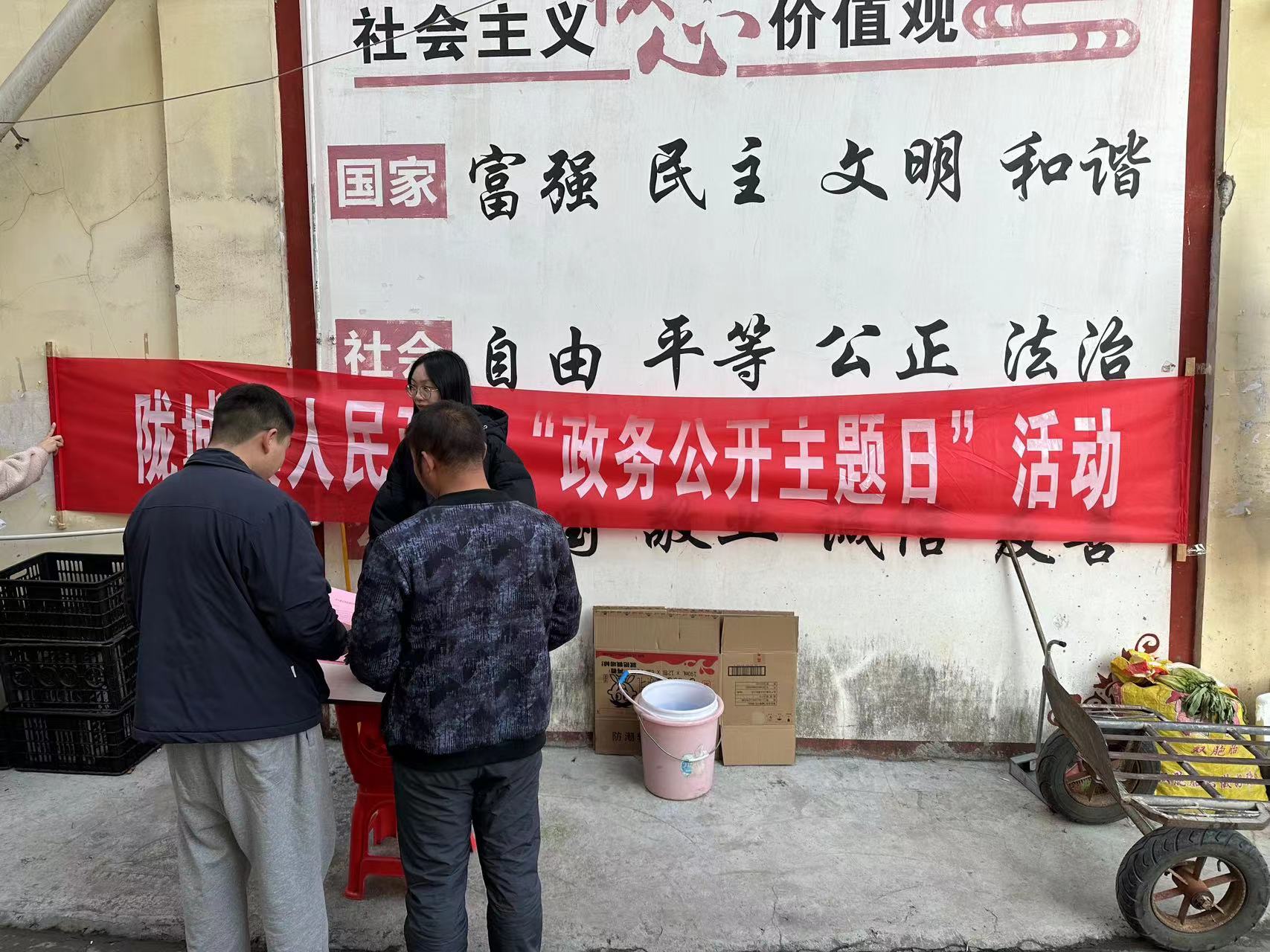 為進一步落實民生實事,搭建聯(lián)系群眾的有益橋梁,推動服務(wù)型政府建設(shè),12月27日上午,通道縣隴城鎮(zhèn)政務(wù)服務(wù)中心組織相關(guān)人員,在集鎮(zhèn)開展“政務(wù)公開主題日”活動。