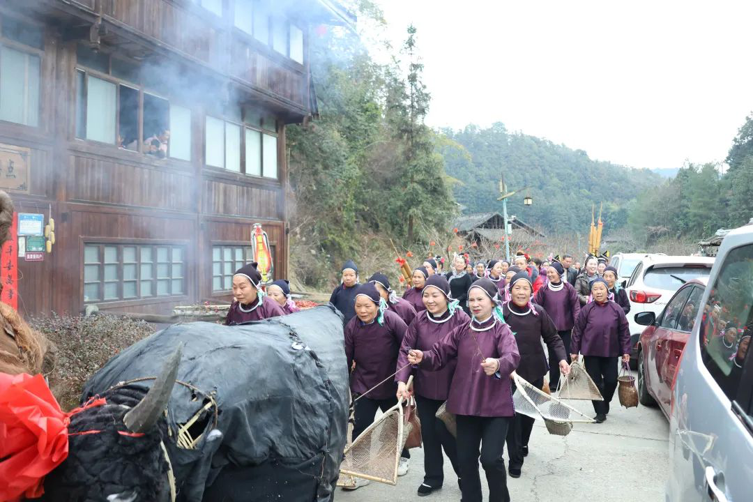 芋頭古侗寨鬧春牛。(吳秋霞/攝)