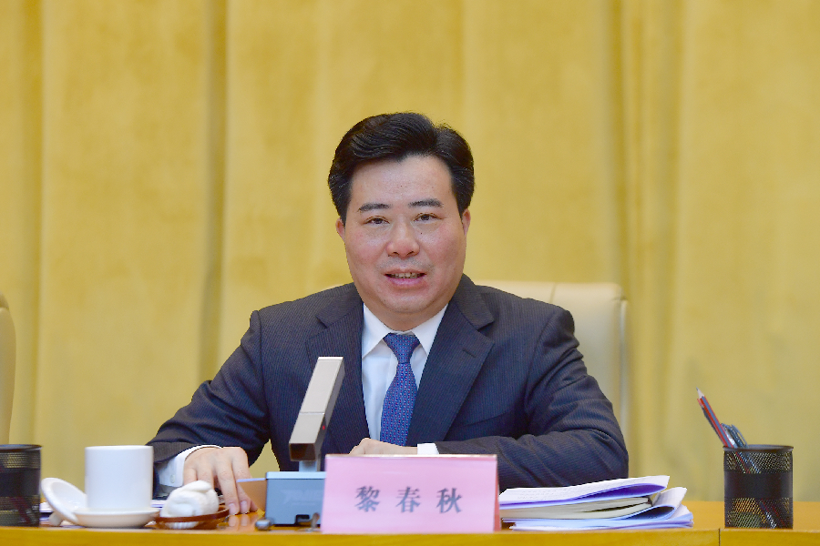 市委副書記、市長黎春秋講話。(記者 潘雨 攝)
