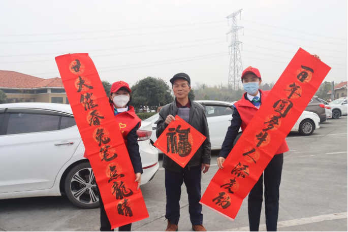 冬日暖陽(yáng),春節(jié)腳步臨近。1月11日,在G65包茂高速公路洪江服務(wù)區(qū)內(nèi),繁忙而有序。在服務(wù)區(qū)一側(cè),懷化分公司的“路燈”志愿者正在現(xiàn)場(chǎng)揮毫潑墨、寫(xiě)福送春聯(lián),洋溢著濃濃的喜慶氛圍。活動(dòng)現(xiàn)場(chǎng)引來(lái)許多司乘朋友圍觀,有的直接挑選已經(jīng)寫(xiě)好的“成品”,有的則根據(jù)自己的需要邀請(qǐng)志愿者為他們“量身定制”。一幅幅紅春聯(lián)和金燦燦的“?!弊譂M載著新春祝福,傳遞著濃濃溫情。