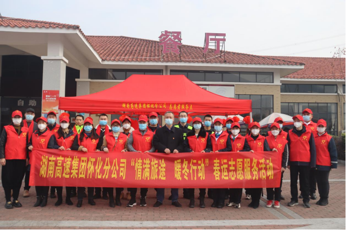 (在洪江服務(wù)區(qū)開(kāi)展志愿服務(wù)活動(dòng)。)