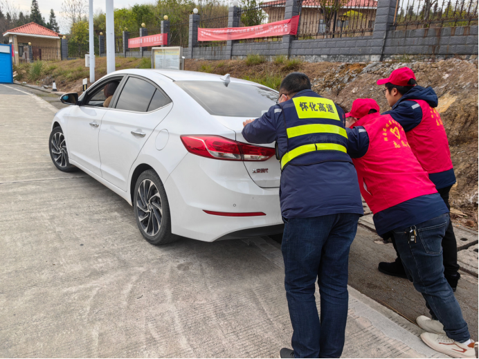 大年初二,在江市收費(fèi)站,一輛小轎車因燃油耗盡,無法啟動。由于身處異地司機(jī)臉上寫滿了焦慮與不安。收費(fèi)站工作人員發(fā)現(xiàn)司機(jī)的難處后, 合力把車推至收費(fèi)廣場安全區(qū)域。隨后帶駕駛員到附近加油站購買汽油,并幫助司機(jī)加上汽油,重新踏上旅途。