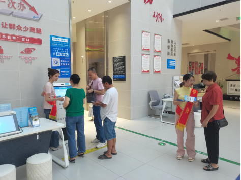 8月10日,在洪江市政務(wù)中心辦事大廳,大學(xué)生志愿者們正在給來(lái)往的群眾講解“湘易辦”APP的各類功能,手把手教群眾注冊(cè)安裝及使用“湘易辦”。