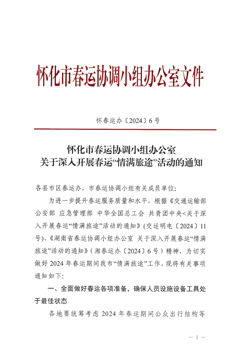 懷化市春運(yùn)協(xié)調(diào)小組辦公室關(guān)于深入開展春運(yùn)“情滿旅途”活動(dòng)的通知