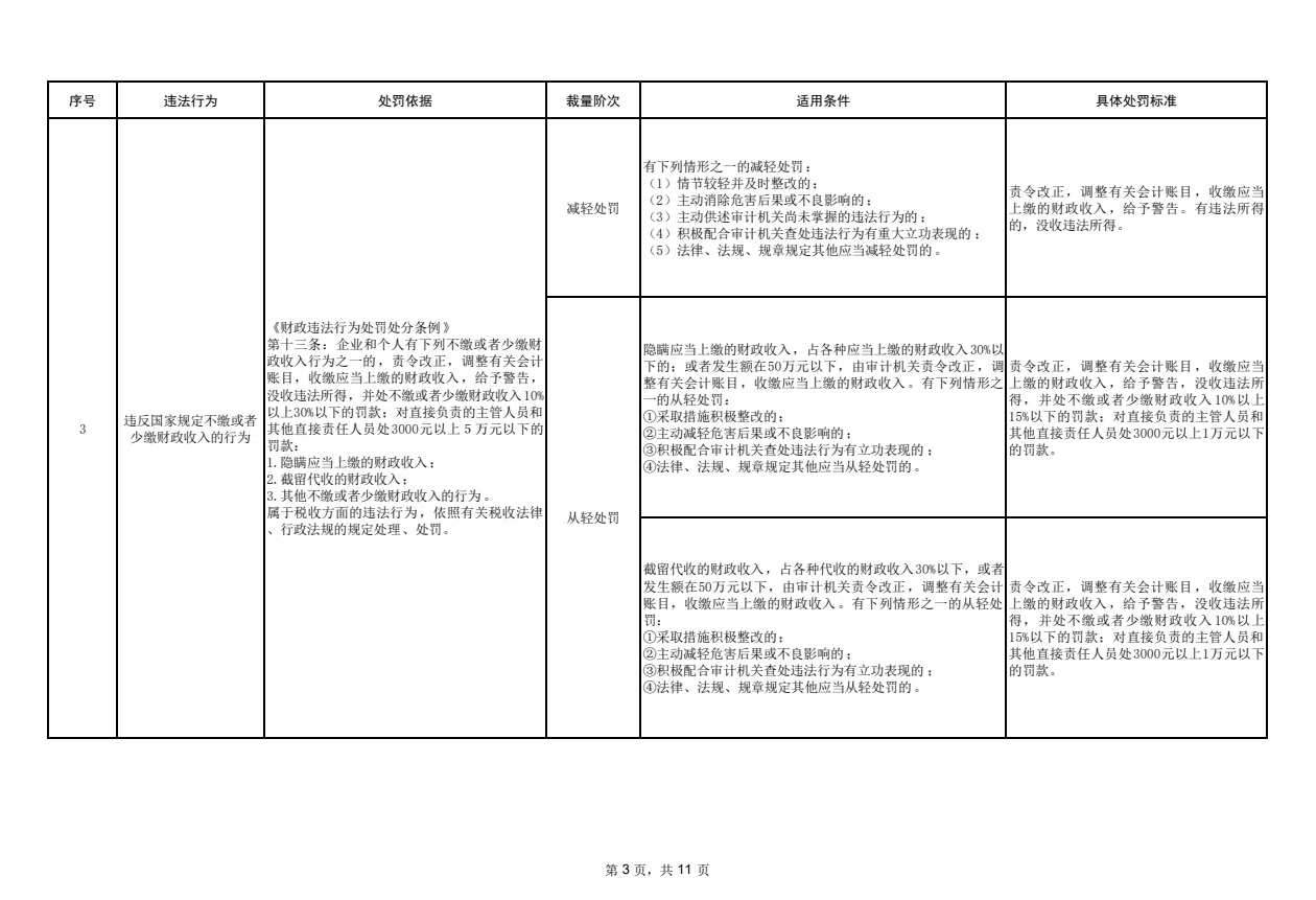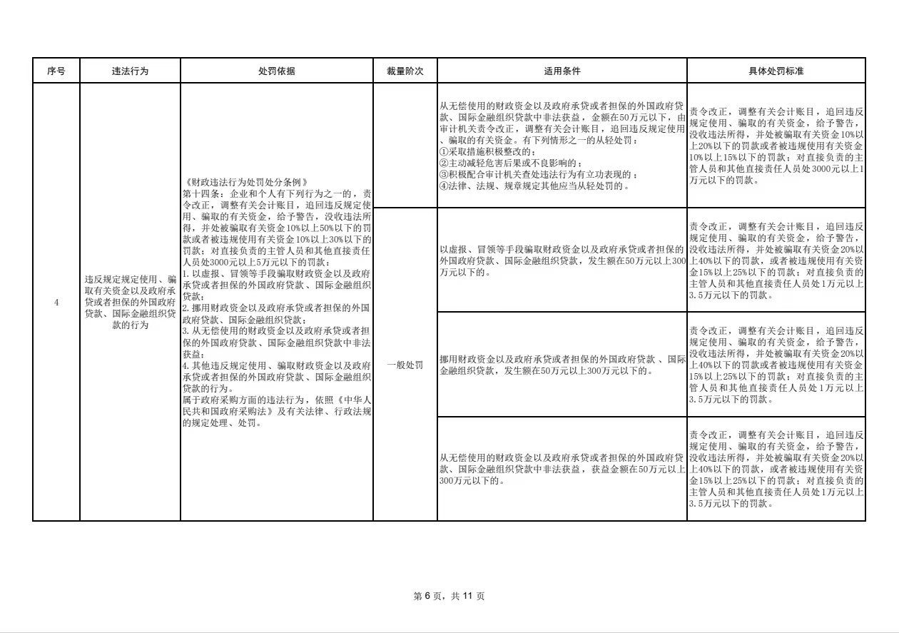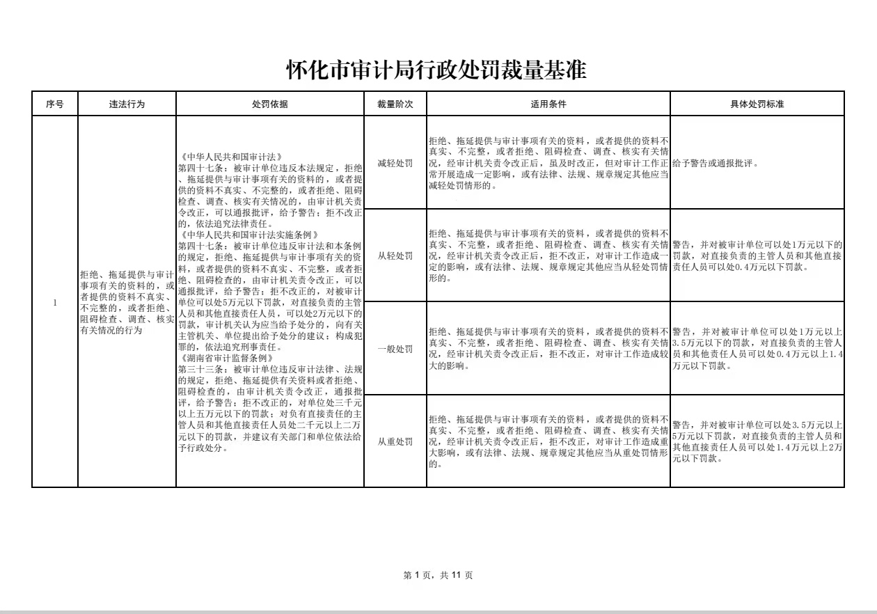 懷化市審計(jì)局行政處罰裁量基準(zhǔn)