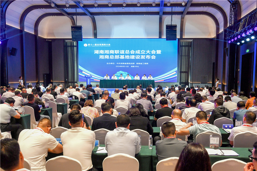 (9月12日下午,湖南湘商聯(lián)誼總會(huì)成立大會(huì)暨湘商總部基地建設(shè)發(fā)布會(huì)在懷化舉行。懷化日?qǐng)?bào)全媒體記者 楊智偉 攝)