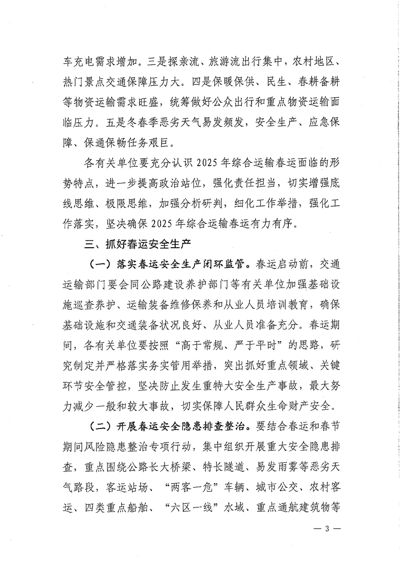 2025年綜合運輸春運安全生產和服務保障總體方案